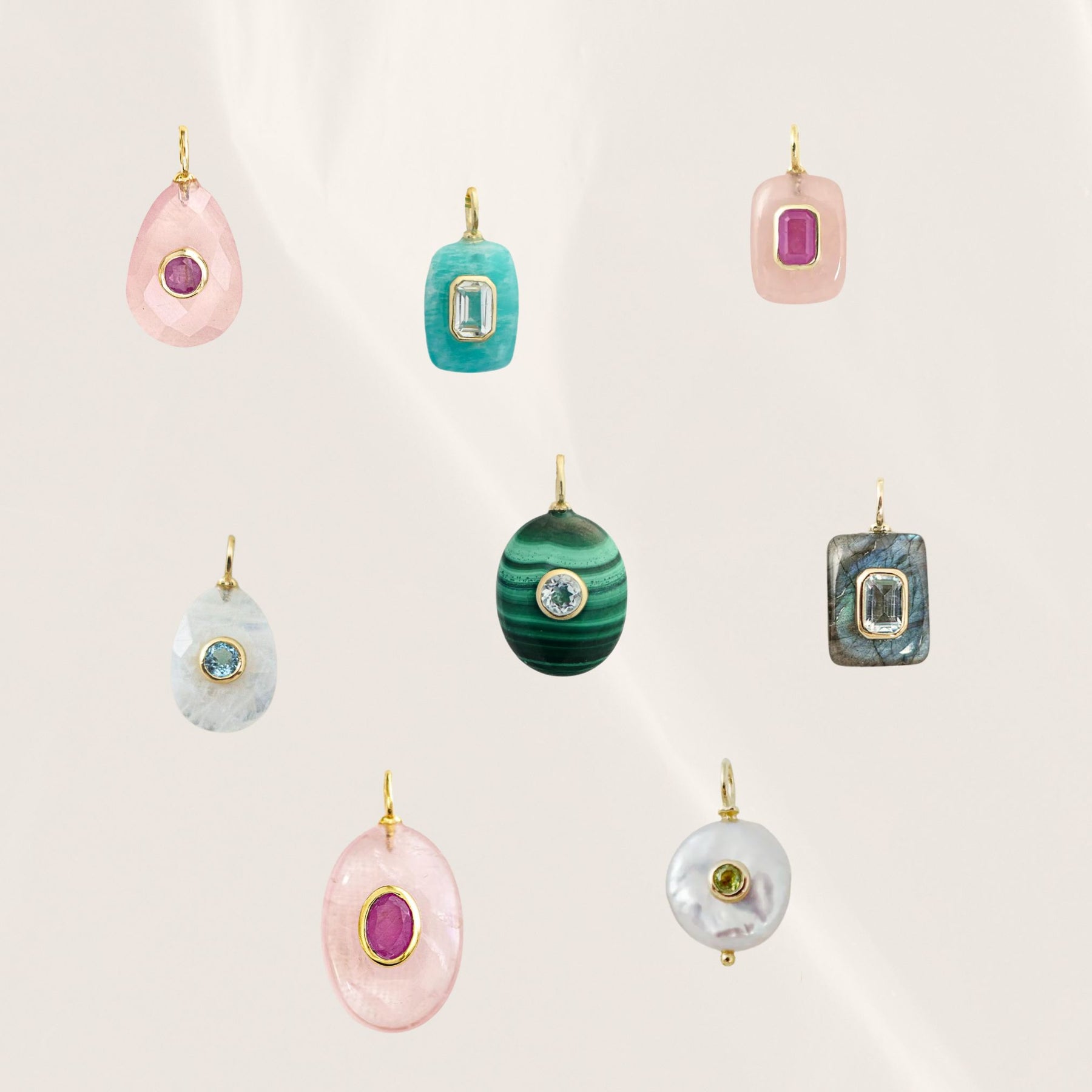 Our new Crystal Gemstone Manifestation Charms are designed to inspire intention and bring a touch of natural energy to your everyday style. Each one-of-a-kind piece is crafted with genuine gemstones and set with sparkling crystal inlays, finished with an 18kt gold vermeil bail. Slip one onto your favorite chain for the perfect charm necklace and manifest your best life with a little crystal magic. ✨