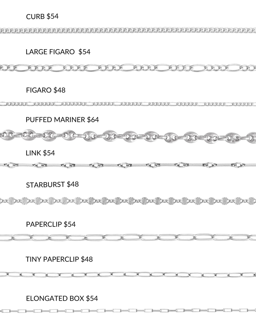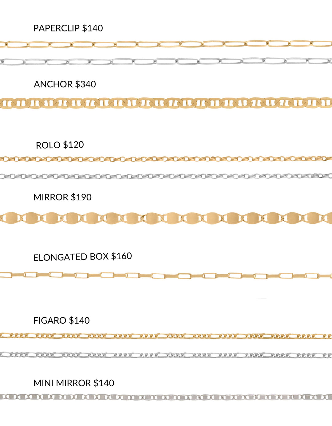 Pricing depends on the chain, our prices range from $48 - $220. We offer 14kt gold filled, sterling silver, solid 14kt yellow gold and white gold chain options. All prices shown above include the chain and welding process.