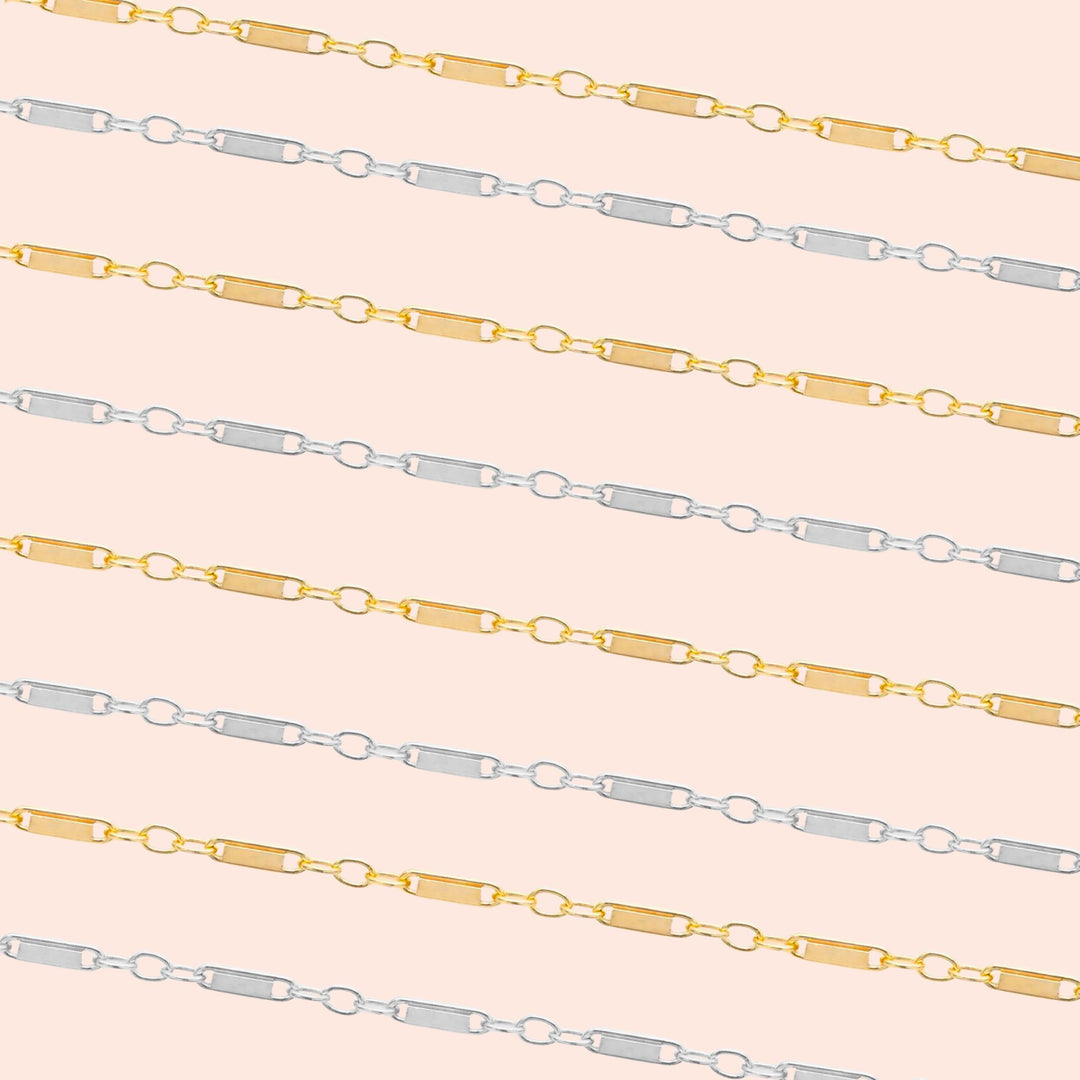 Our limited-edition Mini Bar Chain is here for Fall. Featuring delicate rectangular bars cascading along a sturdy cable chain in your choice of 14kt gold-filled or sterling silver chain. $54 while supplies last.